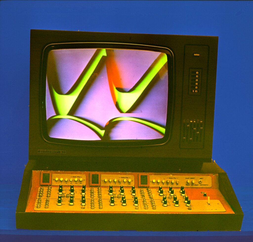 Установка разрабатывалась и изготавливалась в «докомпьютерный» период с 1976 по 1980 гг. и была выполнена в виде электронной приставки к обычному цветному телевизору. Оператор имел возможность с ее помощью «рисовать» на экране телевизора различные световые образы, трансформируемые по конфигурации, цветности, яркости, изменять позитивное изображение на негативное, структурировать его растровым заполнением, задавать определенную программу движения световых образов и их пульсации, изменять масштаб и т.д. В этом «беззвучном» режиме устройство могло быть использовано дизайнерами, художниками текстильной промышленности и т.д.